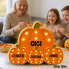 🎃 Custom Name Pumpkins: Personalize with grandkids’ names—each glowing with soft LED lights.
